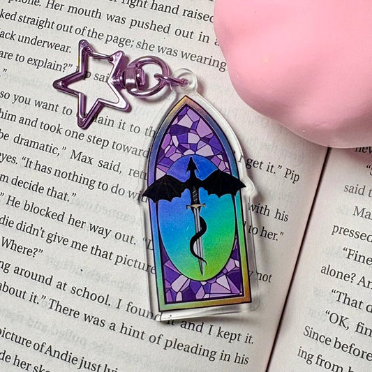 Fantasy Dragon Holographic Keychain – Stained Glass Inspired Window Design