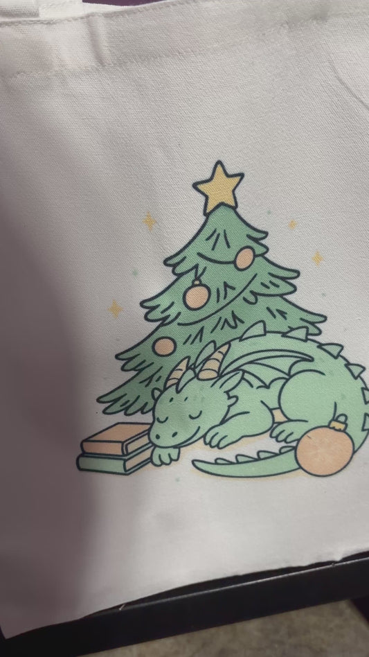 Christmas Dragon Sublimated Canvas Tote Bag