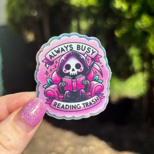 Always Busy Reading Trash Spooky Glitter Sticker