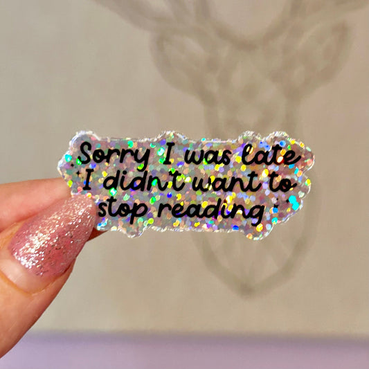 Sorry I Was Late, I Didn’t Want to Stop Reading Glitter Mini Sticker